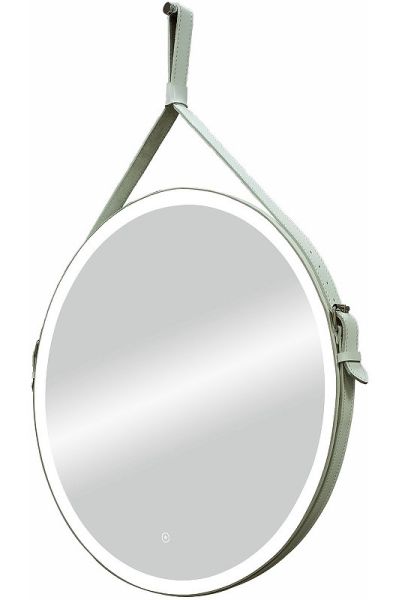 Зеркало "Millenium White Led" D 650 на ремне из натуральной кожи белого цветаLED подсветка 6000Ксенсорный выключатель с функцией димированияремень из натуркожи белого цвета
