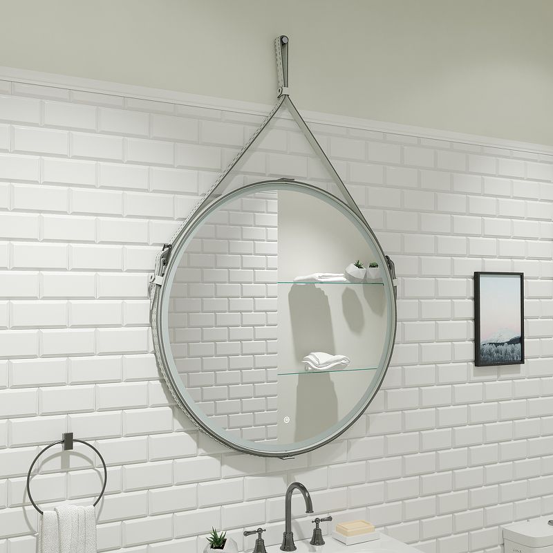 Зеркало "Millenium White Led" D 500 на ремне из натуральной кожи белого цветаLED подсветка 6000Ксенсорный выключатель с функцией димированияремень из натуркожи белого цвета