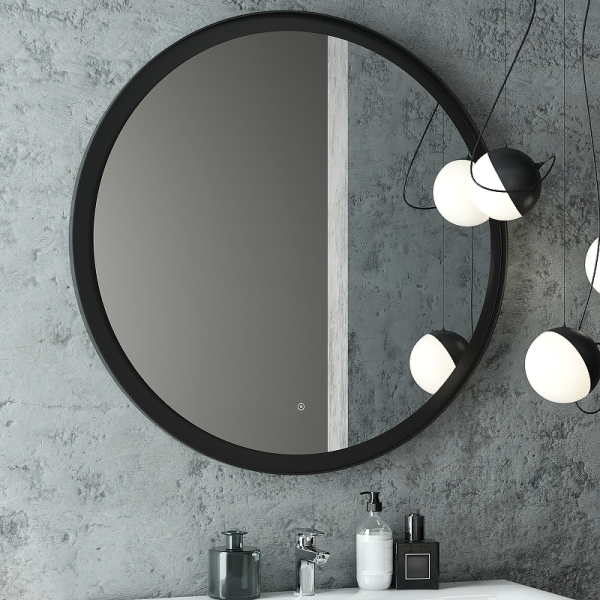 Зеркало "Planet black Led" D 1000 с бесконтактным сенсоромLED подсветка 6000Кбесконтактный сенсор с функцией димированиярама - МДФкороб в черной пленке Soft touch.