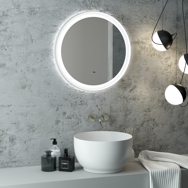 Зеркало "Planet white Led" D 600 с бесконтактным сенсоромLED подсветка 6000Кбесконтактный сенсор с функцией димированиярама - МДФ короб в белой пленке