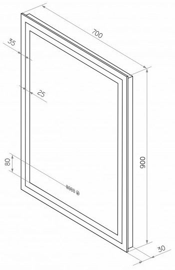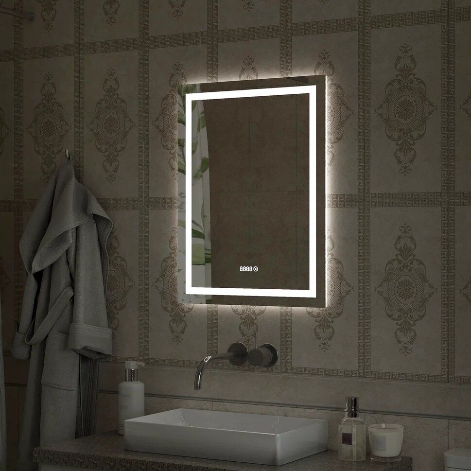 Зеркало "Verte Led" 700х900 с часами, датчиком движенияLED подсветка 6000Кдатчик движениявстроенные часы