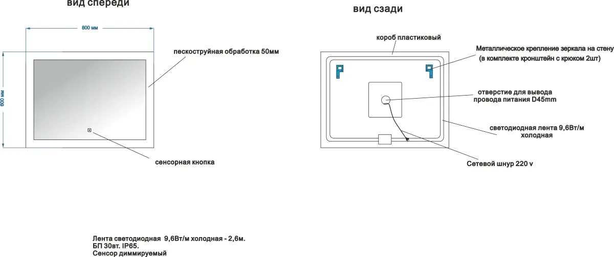 Тип:зеркало с подсветкой