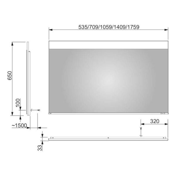 Зеркало с подсветкой Keuco Edition 11597173000 176 смЗеркало с подсветкой,EEK: A++, A+, A, 33 kWh/1000h, 32 Вт,1760 x 650 x 33 mm,