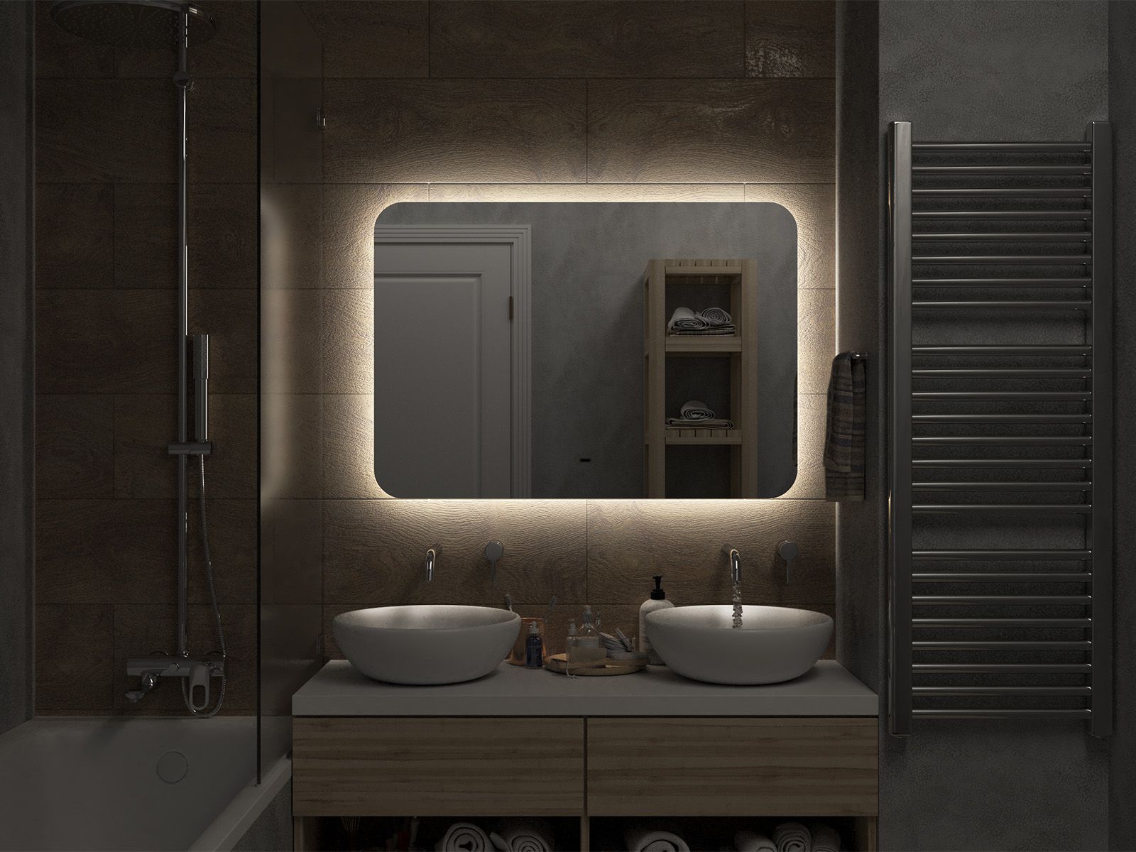 Зеркало с подсветкой для ванной комнаты — это элемент интерьера, который сочетает в себе функции, эстетику и современный дизайн. Его изящная форма и тонкие линии легко вливаются в любое пространство, создавая атмосферу утонченности и уюта.Интегрированная светодиодная подсветка обрамляет зеркало, даря мягкий, рассеянный свет, который не только позволяет удобно наносить макияж, но и наполняет ванную комнату теплом и позитивной энергией.Классический дизайн позволяет использовать его в различных стилях – от минимализма до современного эклектичного оформления. Оно прекрасно вписывается в любую цветовую гамму, будь то нейтральные тона или более яркие акценты.