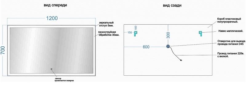 Зеркало с подсветкой Sancos City CI1200 120см с сенсорным выключателем