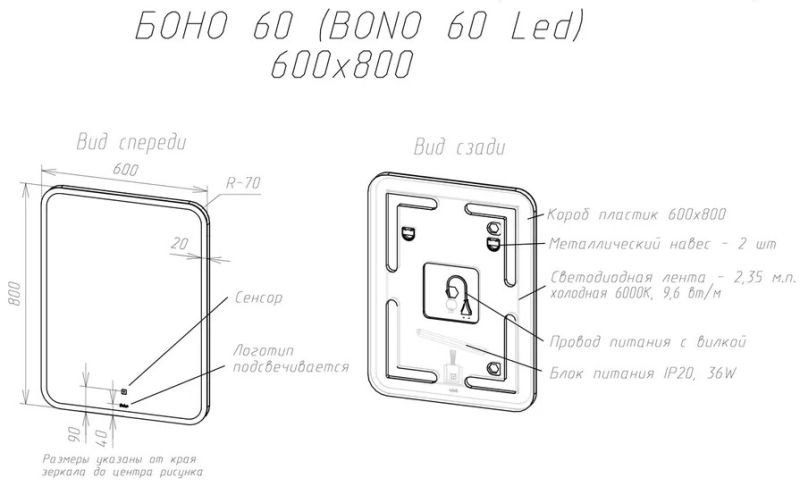 Зеркало нестенное BONO 60, 600х800 с LED подсветкой и сенсорным выключателем. Класс защиты IP44. Стеклянное зеркальное полотно Mirox производства компании AGC Glass Russia, принадлежащей международной группе мирового лидера по производству стекла AGC Inc. Можно использовать в любом помещение: ванная и туалет, прихожая, спальня, гостиная