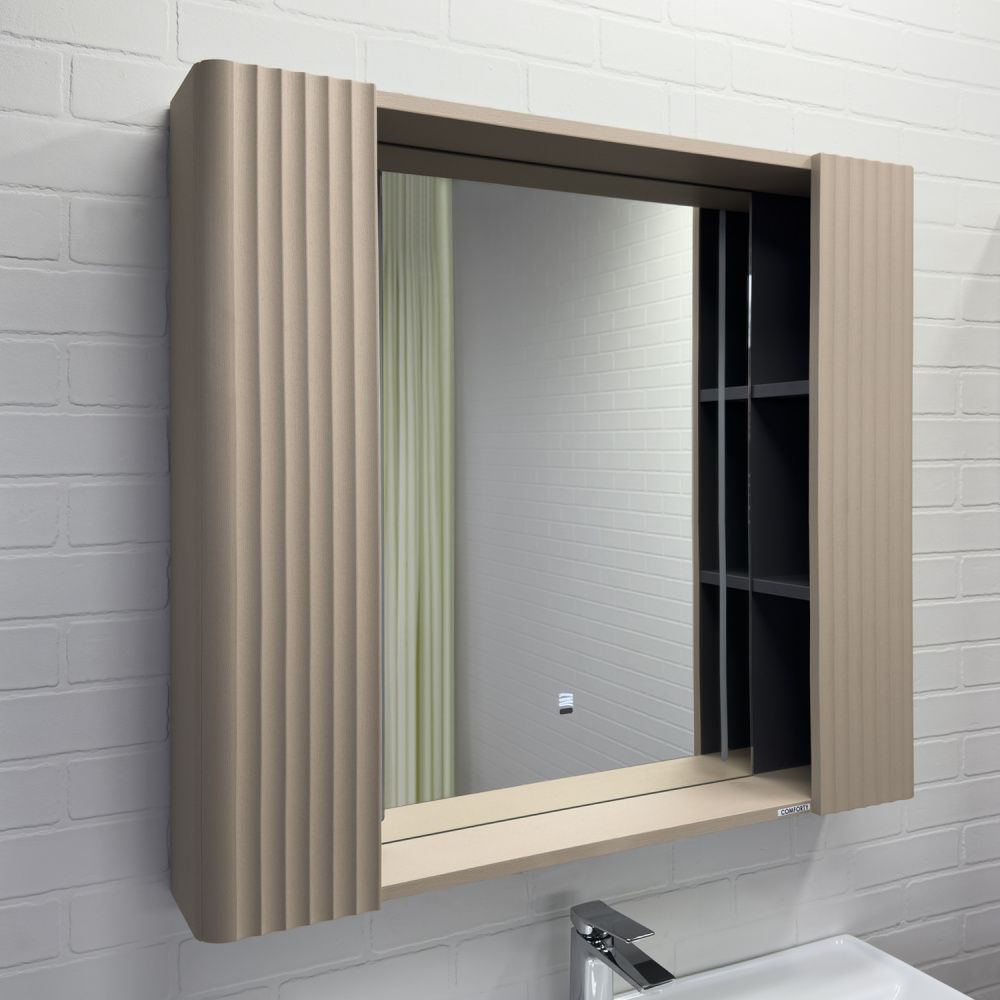 Зеркало-шкаф Comforty Ангара-90 дуб латте с LED подсветкой и антизапотеванием