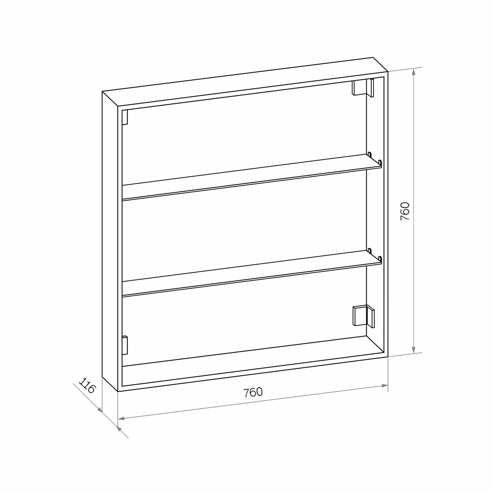 Стеклянные полки легко регулируются по высоте. Хромированные крепления не ржавеют при длительной эксплуатации в условиях повышенной влажности. Защита по стандарту IP44 обеспечивает безопасное использование устройства в условиях повышенной влажности