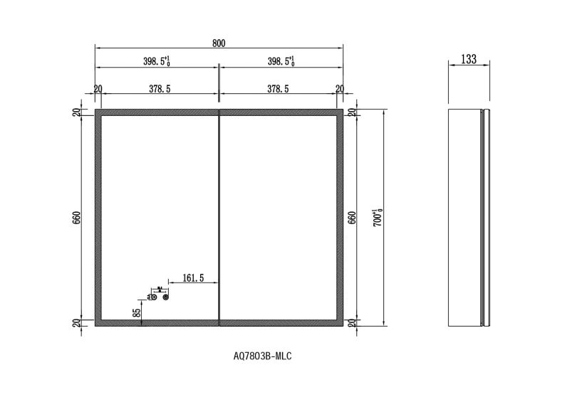 Габариты (Д В Ш), мм: 800*700*133Алюминиевый зеркальный шкаф с подсветкойФорма: прямоугольнаяМонтаж: подвесной, монтируется на поверхность или в нишуДве зеркальные дверцы шириной 39,85см. Двусторонние зеркальные двери и зеркальные боковиныДве стеклянные полки 8 мм.Материал: алюминийЦвет: хромЗеркальный салонКруговая подсветка SMD 2835-120P, цветовая температура 2500K/6500KФункция антизапотевания2 режима переключения света/ цветаСенсорное управлениеПетли BLUM, открывание 95 градусов с доводчиком, обеспечивающим плавное закрываниеМебель поставляется в собранном видеДополнительное оснащение зеркала: подвесыГарантия: 1 год