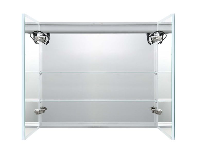 Петли BLUM с доводчиком и углом открывания на 95 градусов обеспечивают плавное и бесшумное открытие дверей, что делает использование шкафа комфортным на протяжении всего срока эксплуатации. Зеркальный шкаф для ванной выполнен из влагостойких и прочных материалов, что гарантирует его долговечность и устойчивость к воздействию влаги в ванной комнате.
