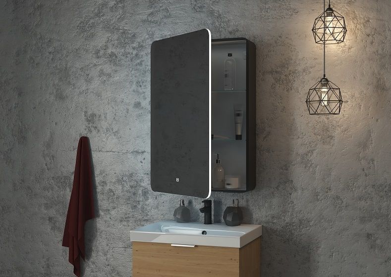 Зеркало-шкаф с подсветкой Art&Max Lecce левый 56см чёрный матовый AM-Lec-560-850-1D-L-DS-F-Nero