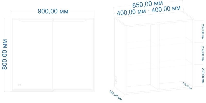• Глубина шкафа без дверцы: 100 мм