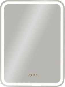 Зеркало-шкаф, оснащенное светодиодной LED подсветкой с диммером, часами и функцией антизапотевания