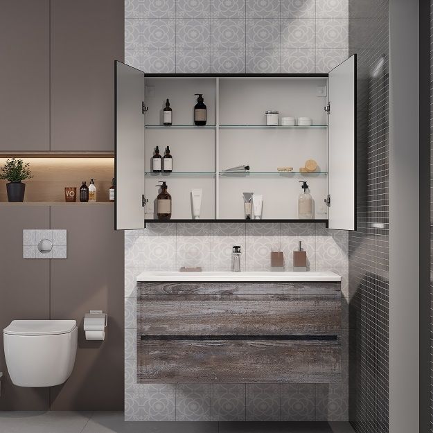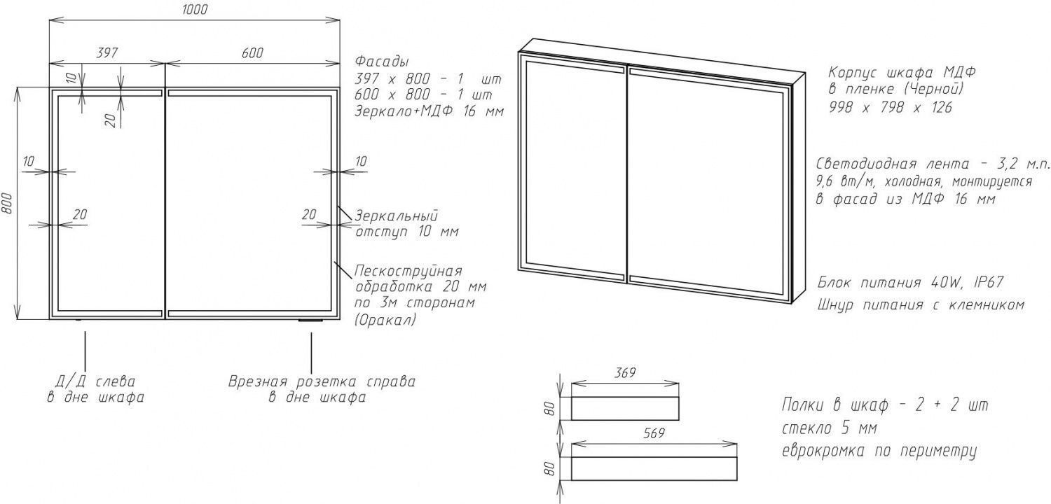 Зеркало-шкаф с подсветкой Art&Max Techno 100см чёрный матовый AM-Tec-1000-800-2D-F-Nero