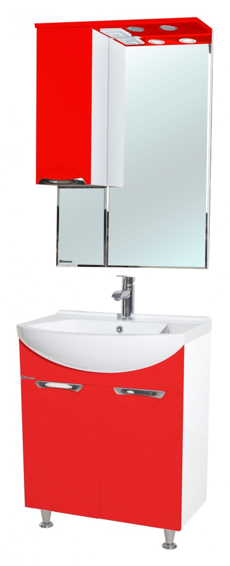 В производстве используют только качественные влагостойкие материалы (ВЛДСП), в составе которых полностью отсутствуют опасные вещества. Данная серия выполнена в эксклюзивном дизайнерском решении в лучших традициях современного стиля. Красный, основной цвет исполнения Bellezza, гармонирующий с большинством интерьерных решений. Шкаф-зеркало предусматривает удобную и вместительную систему хранения. Зеркало Bellezza оснащено галогеновой подсветкой, позволяющей комфортно провести утренние процедуры.
