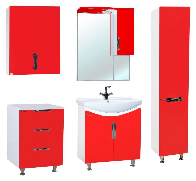 В производстве используют только качественные влагостойкие материалы (ВЛДСП), в составе которых полностью отсутствуют опасные вещества. Данная серия выполнена в эксклюзивном дизайнерском решении в лучших традициях современного стиля. Красный, основной цвет исполнения Bellezza, гармонирующий с большинством интерьерных решений. Шкаф-зеркало предусматривает удобную и вместительную систему хранения. Зеркало Bellezza оснащено галогеновой подсветкой, позволяющей комфортно провести утренние процедуры.
