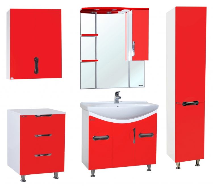 В производстве используют только качественные влагостойкие материалы (ВЛДСП), в составе которых полностью отсутствуют опасные вещества. Данная серия выполнена в эксклюзивном дизайнерском решении в лучших традициях современного стиля. Красный, основной цвет исполнения Bellezza, гармонирующий с большинством интерьерных решений. Шкаф-зеркало предусматривает удобную и вместительную систему хранения. Зеркало Bellezza оснащено галогеновой подсветкой, позволяющей комфортно провести утренние процедуры.