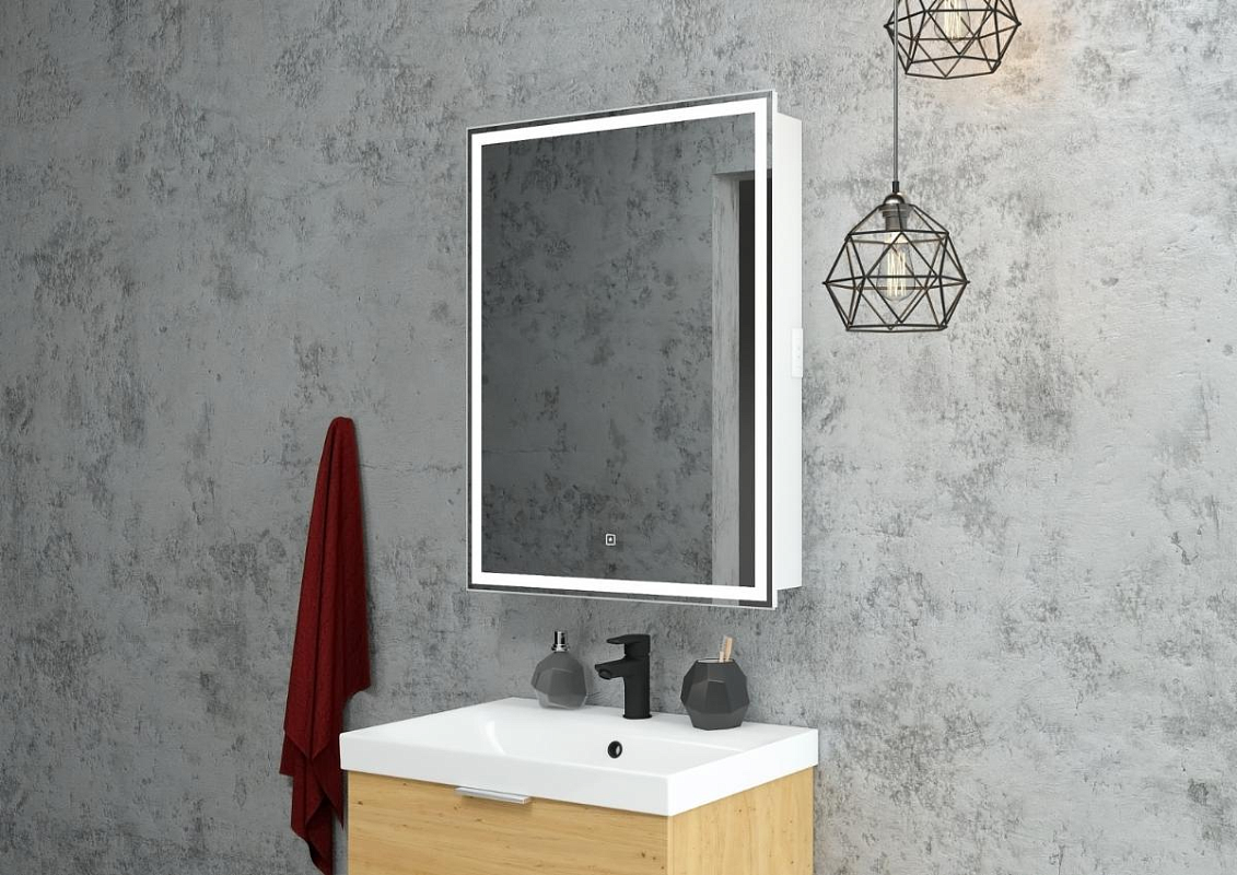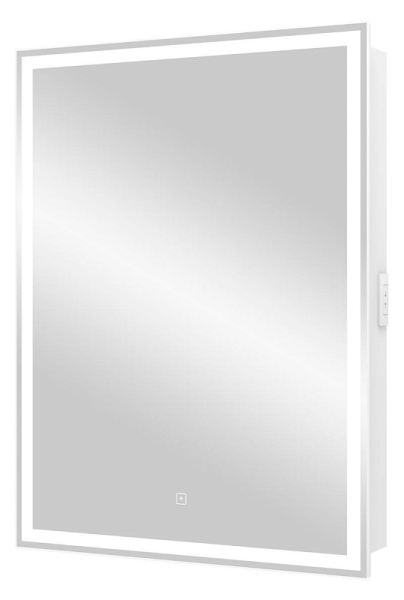 Зеркало-шкаф "Allure LED" 550х800 левый с розеткойLED подсветка 6000К;сенсорный включатель с функцией димирования,розетка,Материал корпуса - влагостойкий ЛДСП + МДФ в пленке ПВХ