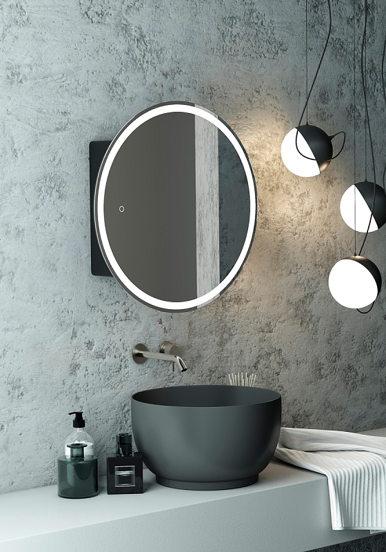 Зеркало-шкаф "Torneo Black LED" d 700 с подсветкойLED подсветка 6000К; сенсорный включатель с функцией димирования, материал корпуса- МДФ, цвет корпуса - черный, реверсивные крепления
