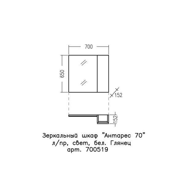 Зеркальный шкаф СаНта Антарес 700519, 70 см с подсветкой, белый
