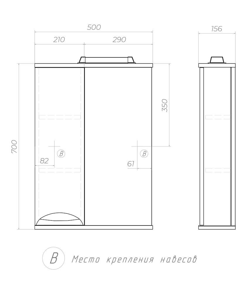 Левое/правое исполнение шкафчика; 2 полки ЛДСП;