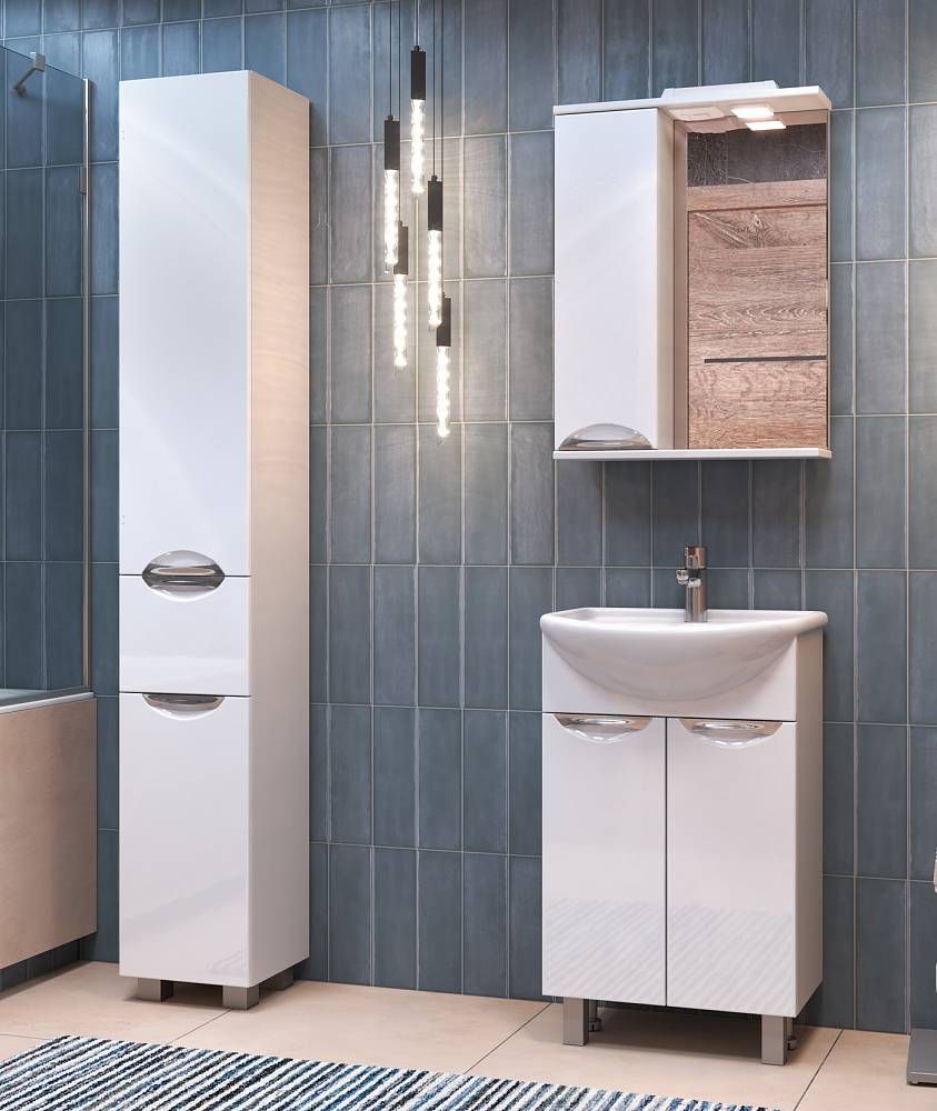 Левое/правое исполнение шкафчика; 2 полки ЛДСП; ручка металлическая хромированная; 1 светодиодны... Подробнее