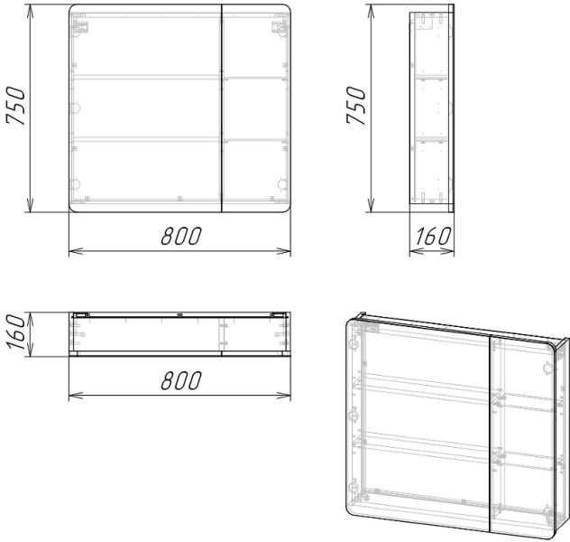 Вместительный зеркальный шкаф Адель является лаконичной и удобной моделью, которая отлично впишется в любой интерьер и станет украшением ванной комнаты без потери функциональности. Петли с доводчиками, открывание за фасад, внутри полочки как справа, так и слева, плавно скругленные углы.